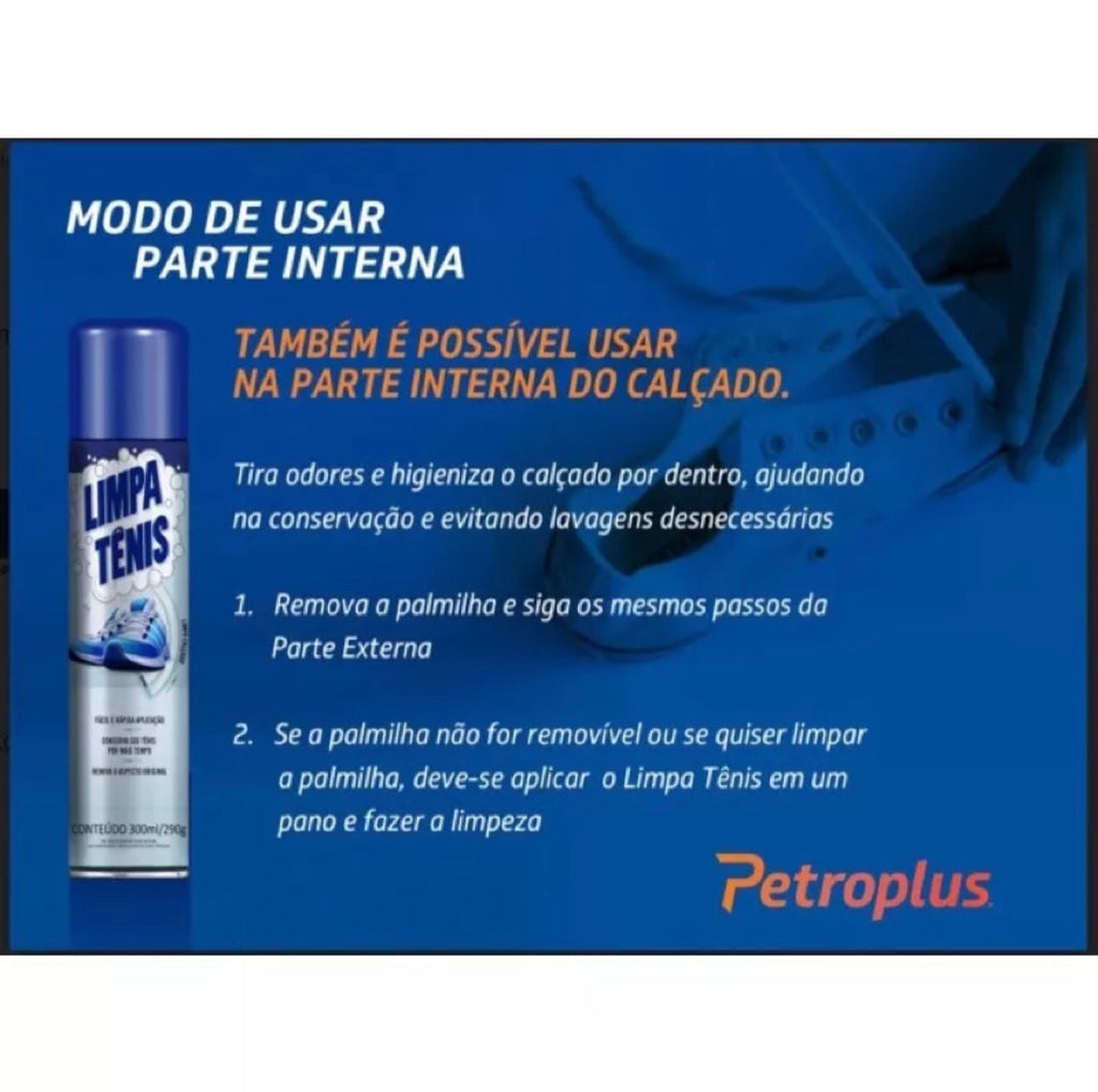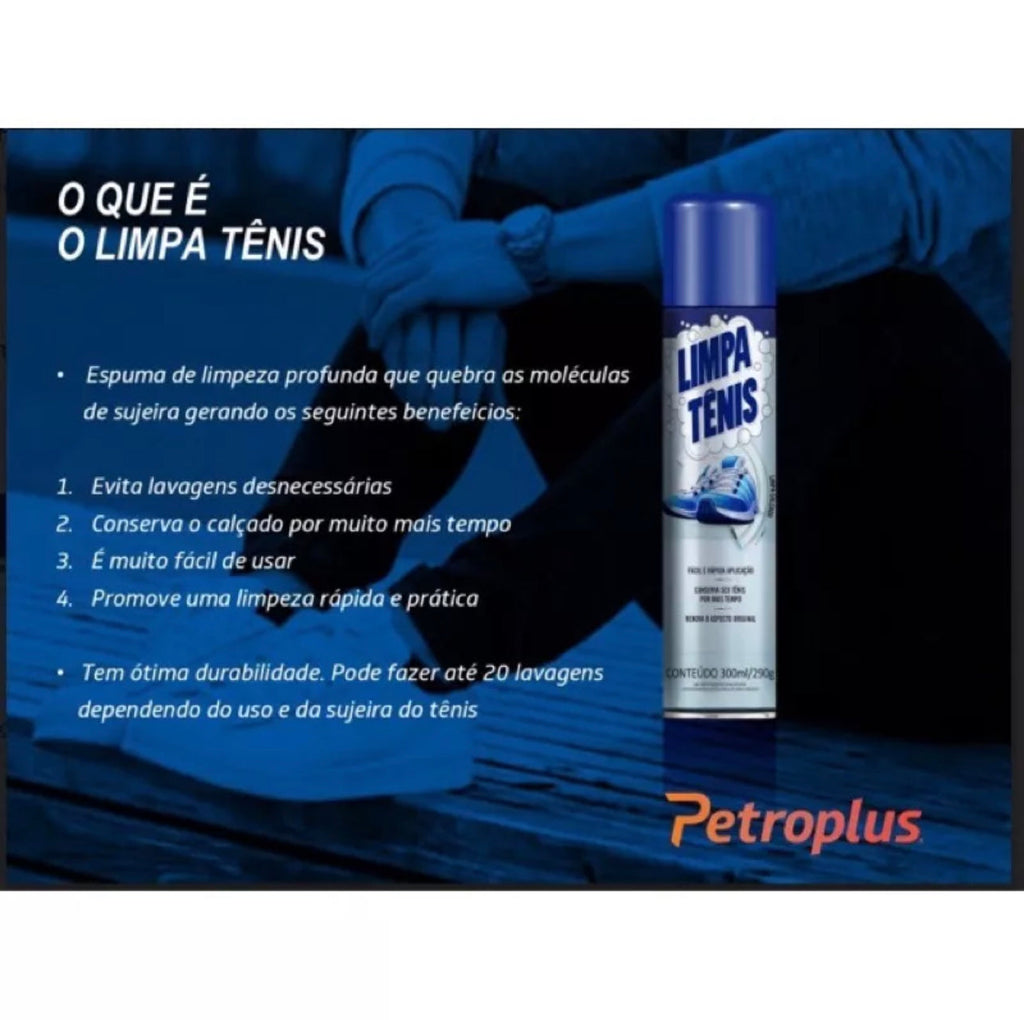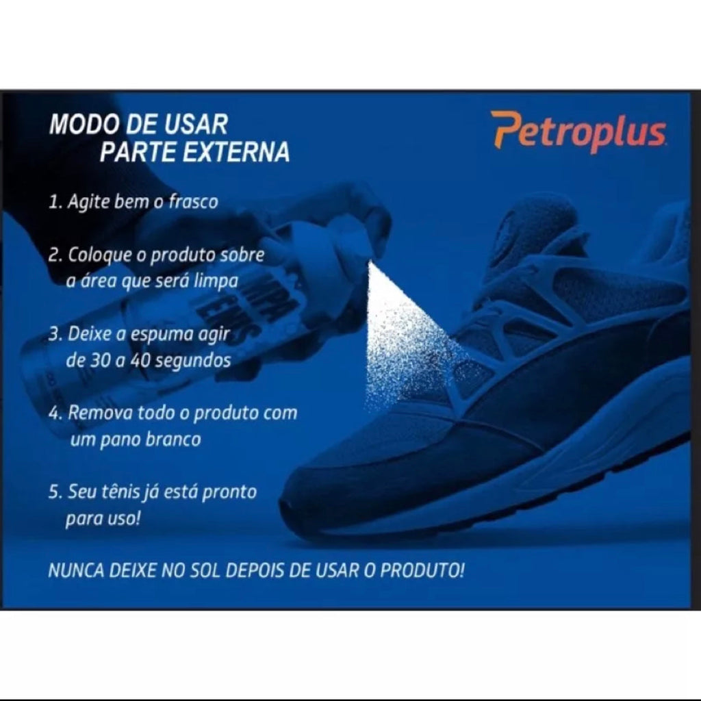Limpa Tênis Petroplus conteúdo 300ml/290g - Nosso Limpa Tênis é indicado para limpeza de tênis em nylon e em superfícies como borracha. - Sua Espuma age Diretamente na Sujeira quebrando suas moléculas e facilitando a remoção - Evitando lavagem Desnecessária e Fazendo com que seu Calçado Aumente Sua Durabilidade - A eficácia do nosso produto está totalmente ligada ao uso continuo - Previne manchas e amarelados que o tempo causa - Envio imediato